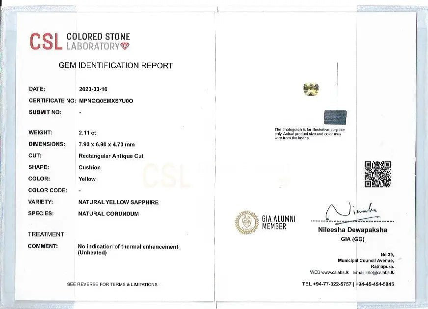 Introducing our enchanting Natural Yellow Sapphire Engagement Ring. This gemstone is a true luxury, offering a vibrant, deep yellow hue that is truly mesmerizing. Explore the beauty and brilliance of this 2.11-carat cushion-cut sapphire ring.