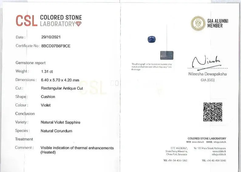 Introducing the stunning Natural Blue Purple Sapphire, a truly remarkable gemstone featuring a unique bi-coloured display of blue and purple hues. With a precision cushion cut, this 1.31-carat sapphire boasts exceptional clarity (VS), making it perfect for engagement rings, custom jewelry designs, or a collectorβs gem.