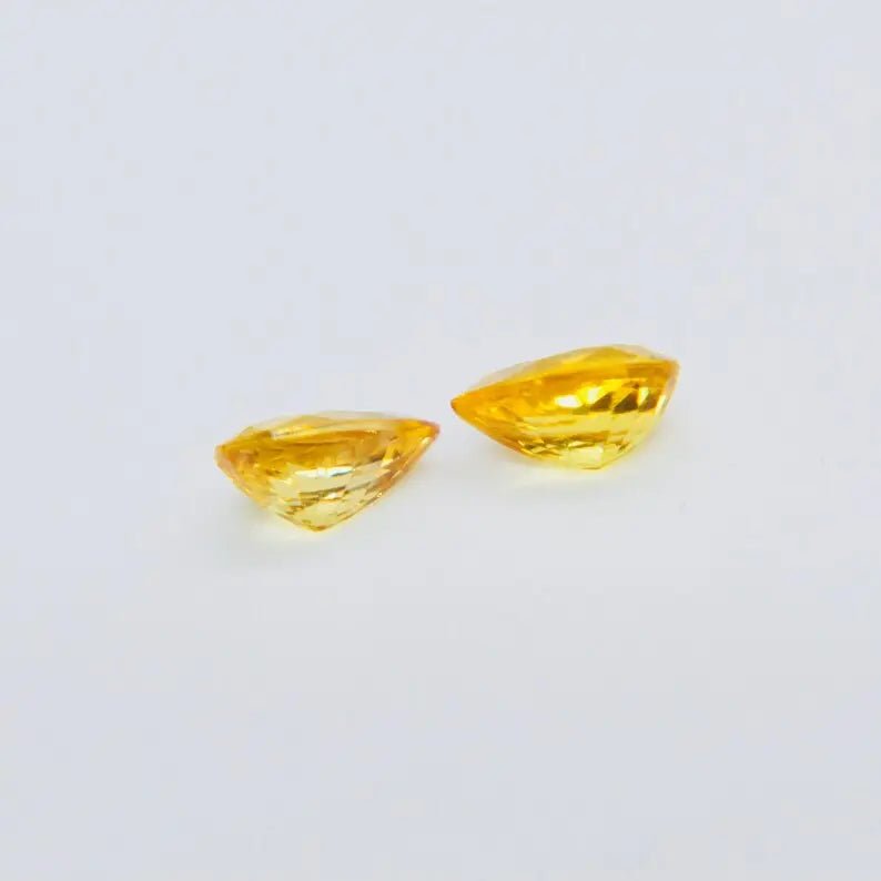 Add a splash of sunshine to your jewelry designs with this natural vivid yellow sapphire pair. Ethically sourced from Ceylon and completely unheated, these pear-cut gems are ideal for elegant earrings or custom creations.
